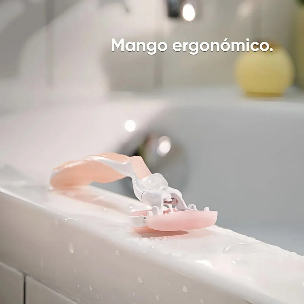 Afeitado suave y placentero gracias a sus barras de gel que se activan con agua. Deslizamiento extra y mayor confort para una piel visiblemente más lisa ✨🛁🪒