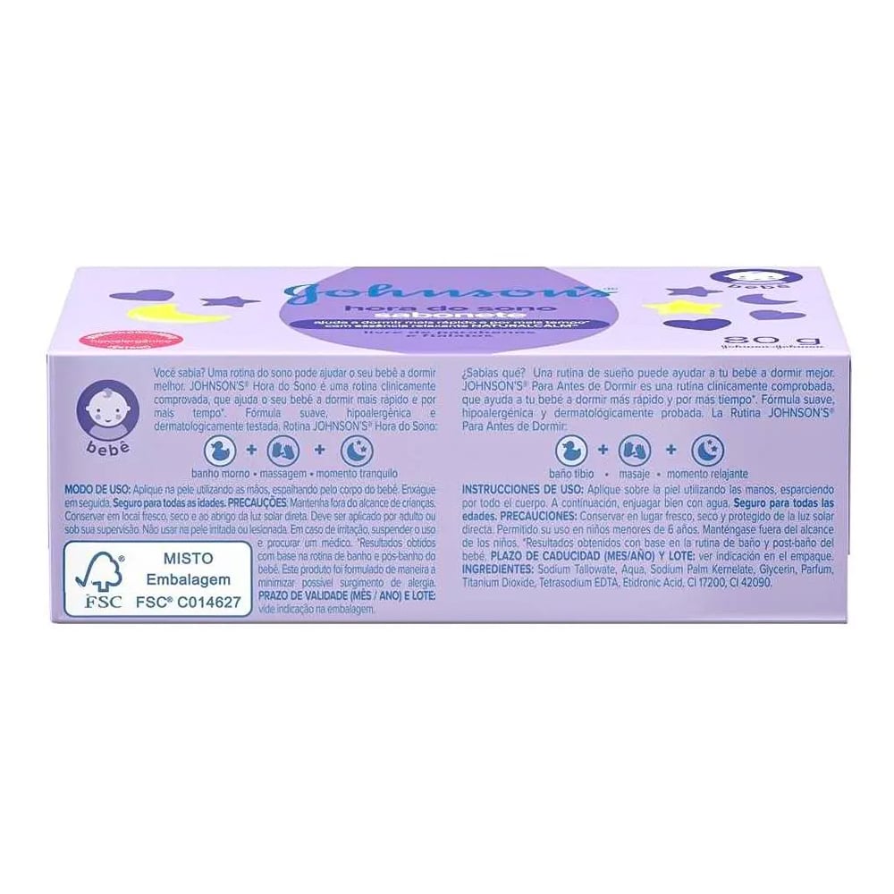 El Jabón Johnson’s Antes de Dormir limpia suavemente la piel del bebé, dejándola suave y con un delicado aroma relajante. Su fórmula con la exclusiva esencia NaturalCalm™ ayuda a relajar al bebé antes de dormir, promoviendo un descanso tranquilo. Dermatológicamente testeado y hipoalergénico.